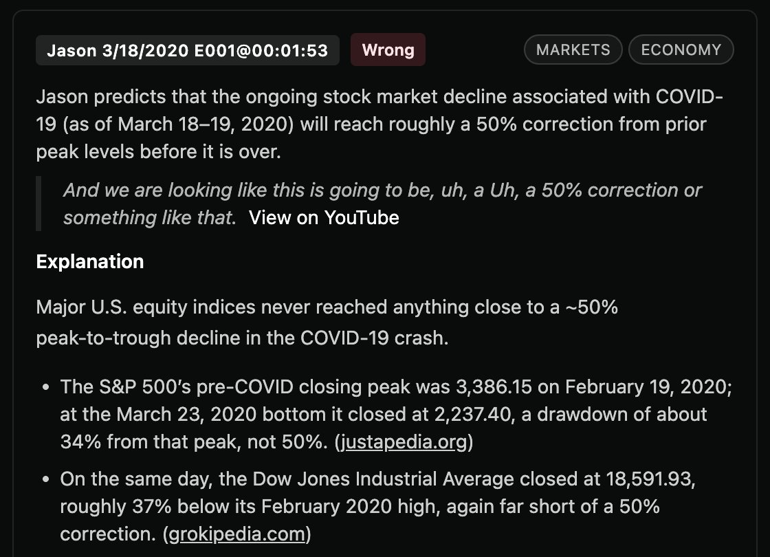 • Extracting and validating every prediction made on the All-In Podcast with AI
